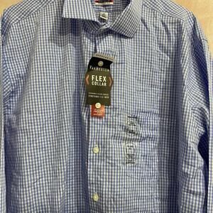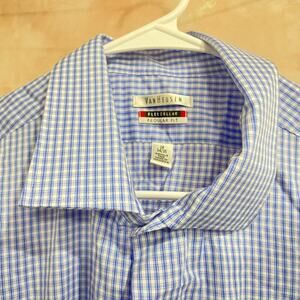 New! Van Heusen Flex collar regular fit Blue plaid Wrinkle free Men 18-34/35