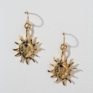 Shine on me. These sunny earrings feature two 24k gold-plated brass smiling sun charms on gold fill ear hooks.