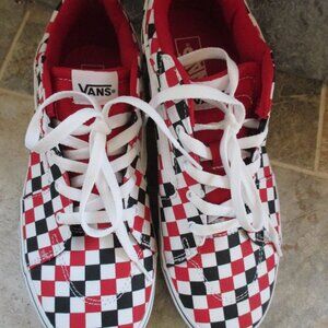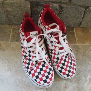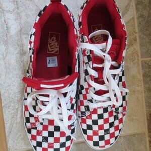New Vans checkered skate shoes, black/white/red, youth size 7.