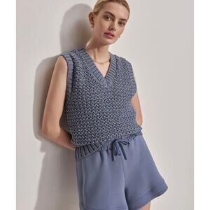 New Varley Adie Knit Vest Sweater Chunky Medium With Tags Stone Blue