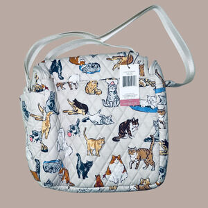New Vera Bradley A CATS LIFE Lunch Crossbody Quilted Cotton Beige