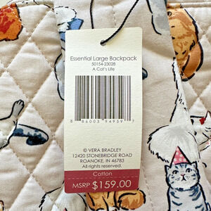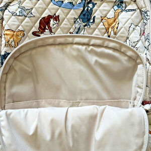 New Vera Bradley A Cats Life Essential Large Backpack Quilted Cotton Beige