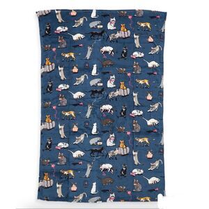 New Vera Bradley Fleece Cats Throw Blanket 80"x50" Blue Ivory White E16