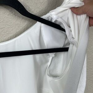 Shoulder pads snap in and out making it easy to wear with or without.