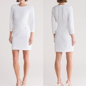 New Veronica Beard Channing Jacquard Sheath Dress In White Long Sleeve Sz 8