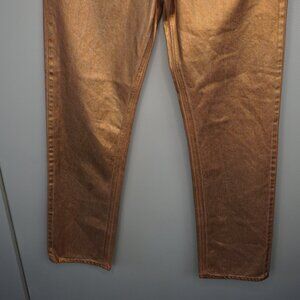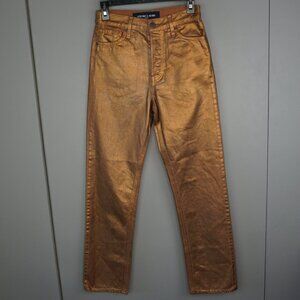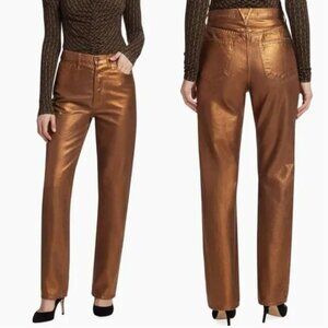 New Veronica Beard Daniela Metallic Straight Leg Pant in Bronze size 24. New! The tags were removed but the pants were never worn. Elevate your denim day with the Bronze Daniela Metallic Pant. Crafted from non-stretch fabric, this high-rise bottom features a classic five-pocket design and a relaxed, straight-leg silhouette. Perfect for festive parties, nights out, or to make a bold statement, they can be dressed down with your favorite graphic tee and booties or dressed up with heels and a silky top for a modern take on glam rock.