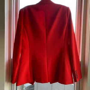 Gorgeous, new poppy-red VB blazer. Compatible with all VB dickey’s. Purchased earlier this month, never worn! Tags still attached, happy to re-wrap in plastic before mailing. OG price $650 (see picture of tag). Back pleat “stay stitch” still in place.