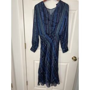 New Veronica Beard Dita Printed Devoré-satin Silk Midi Long Sleeve Dress size 4