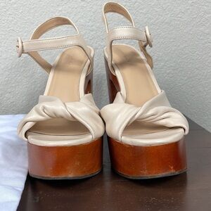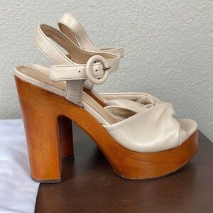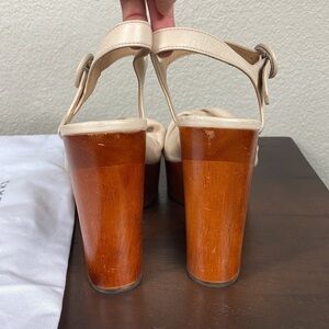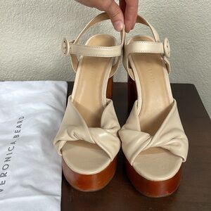 New Veronica Beard Gela Platform Sandal Shell Beige Wooden Chunky Heel Sz 9