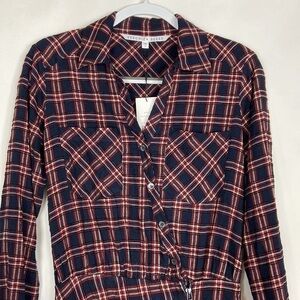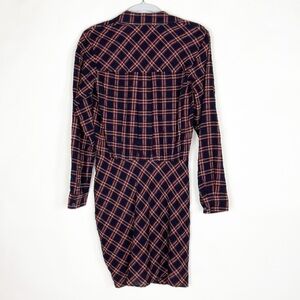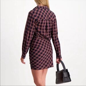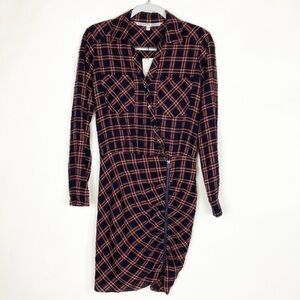 New Veronica Beard Karen Dress Long Sleeve Plaid Ruched Button Zip Mini Dress
