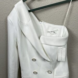 New Veronica Beard Middleton One Shoulder Blazer Mini Dress White Sz 2