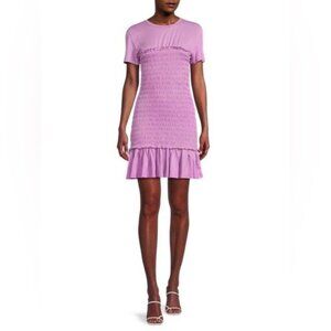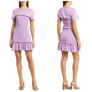 New Veronica Beard Tomlin Smocked Bodice Mini T-Shirt Dress in Violet Size L