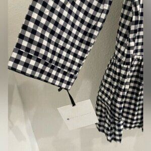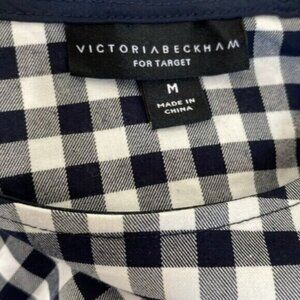 New Victoria Beckham Seersucker Preppy Peplum Black White Top Ruffle Medium