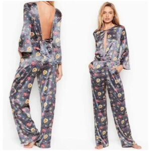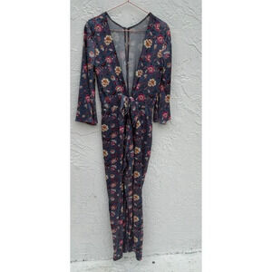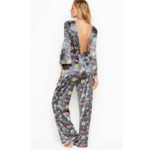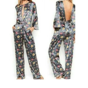 New Victoria Secret's Womens Flare Sleeve Satin One Piece Jumpsuit Floral Sz M