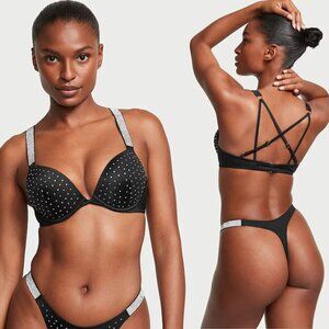 New! Victoria’s Secret Black Push Up Shine Strap Swim Bikini Bottom 4553