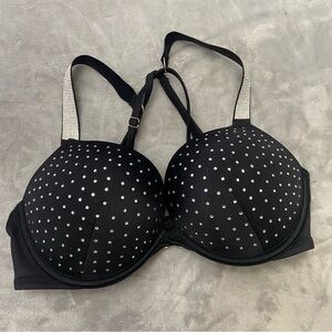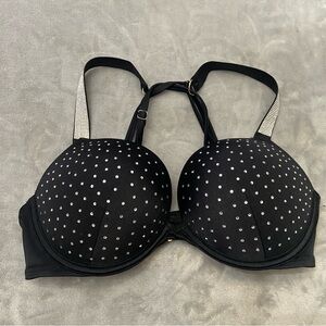 This can't-miss style goes all out with maximum lift and lots of glitz and glam, from the gleaming rhinestone straps to the diamantes glittering at the cups. Strappy detail in the back finishes this stellar style.