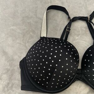 Victoria’s Secret Nero Black Push-Up Shine Strap Swim Bikini Bottom Size 34D