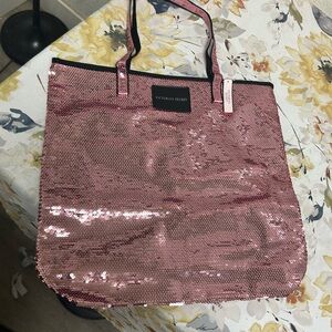 New Victoria's Secret Bling Pink Sequin Sparkle Pink Tote Bag.