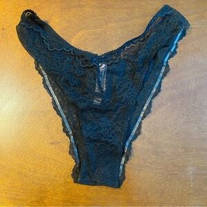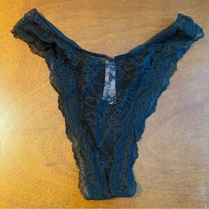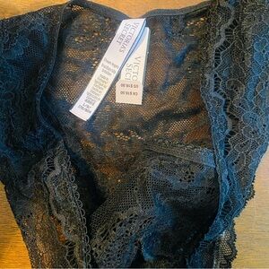 New with tags these are fully black lace; the cover shot is included to give you a sense of the V front cut but the pair you are purchasing are the black lace pair in the photos. Size Large.