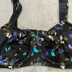 Victoria's Secret Black/ Multi Electric Butterflies Shine Strap Wicked Bikini Top Size 32DD