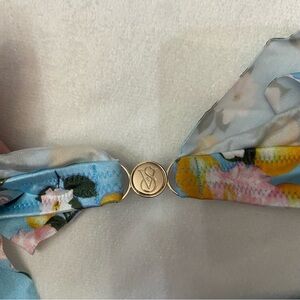 Victoria's Secret Blue Floral Lemon Print Ruffled One Piece Swimsuit Size Large