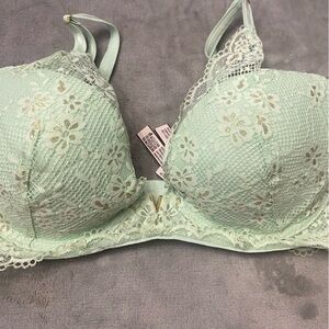 New! Victoria’s Secret Green Lace Lightly Lined Plunge Half Pad Bra 10266