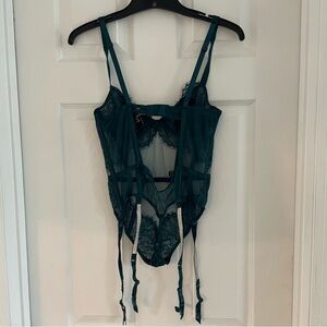 New! Victoria's Secret Green Lingerie Shine Strap Lace Teddy Garter 22864