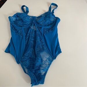 Victoria's Secret Enamel Blue Lace The Fabulous Curve Full Cup Sheer Teddy Size Medium