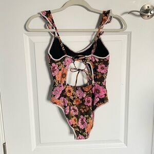 Victoria’s Secret Pink Orange Floral Ruffle Cutout One Piece Swimsuit Size Small