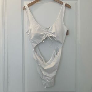 New Victoria's Secret Pink Ruched Front One Piece Swimsuit White XL White