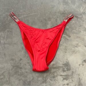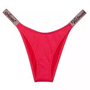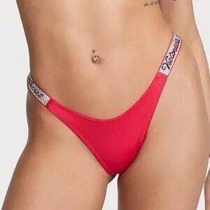 New! Victoria’s Secret Red Shine Strap Logo Brazilian Bikini Bottom 4578