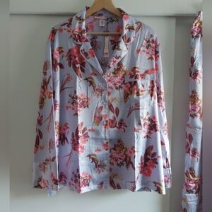 New Victoria's Secret Satin Pajama Set Lavender Floral Pattern XL