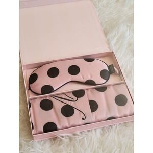 Have a new in box Victorias Secret Satin Black Pillow Case & Eye Mask Gift Set with White Polka Dot design. Sealed never opened.