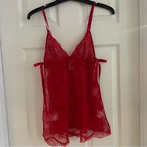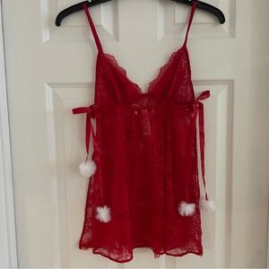 Victoria's Secret Red Teddy with white Pom Poms and Matching Crotchless Panty Santa Christmas Mrs clause