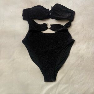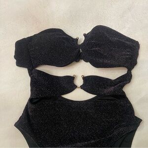Victoria’s Secret Swim Black Shimmer Cutout Bandeau One Piece Swimsuit Size Small