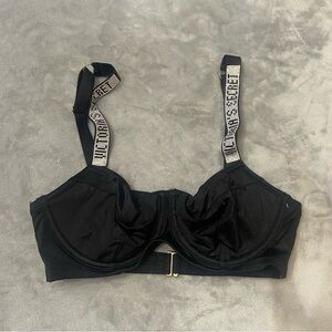 Victoria’s Secret Black/Silver Shine Strap Wicked Unlined Push-Up Bikini Swim Top