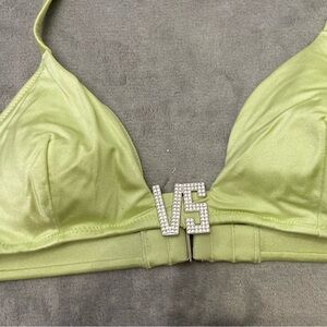 Victoria’s Secret Swim Green Silver VS Shine Hardware Bikini Top XS