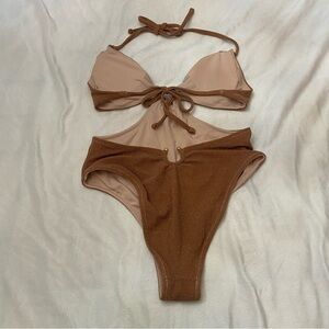 Victoria’s Secret Brown Tan Shimmer Halter Cutout One Piece Swimsuit Size Small