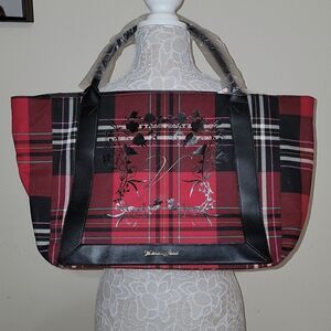 New Victoria's Secret Tartan Plaid Weekender Large Tote Bag Red & Black Limited