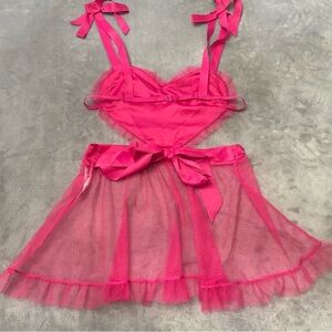 Victoria's Secret Very Sexy Tease Hot Pink Fun & Flirty Dotted Mesh Apron