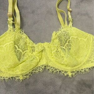 Victoria’s Secret Dream Angels Lime Citron Yellow Unlined Balcony Lightly Lined Lace Demi Bra Size 36B