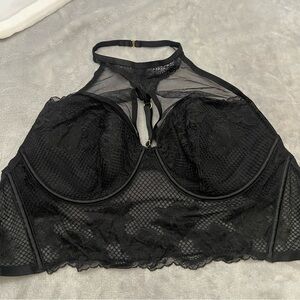 Victoria's Secret Very Sexy Black Fishnet High-Neck Lace Corset Top Size M-DD