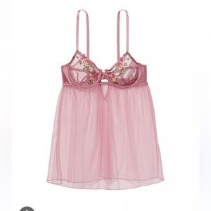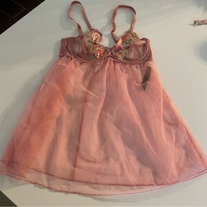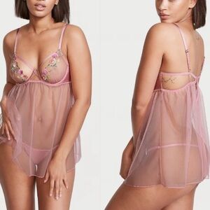 Victoria's Secret Peach Very Sexy Open-Cup Floral-Embroidered Babydoll Nightie Size XS