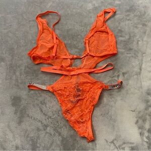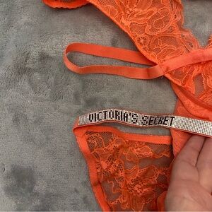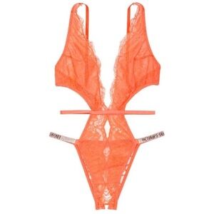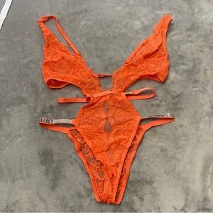 Victoria’s Secret Very Sexy OrangeShine Strap Lace Crotchless Bodysuit Size Small