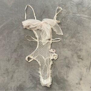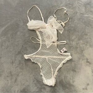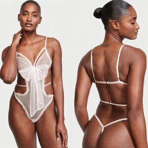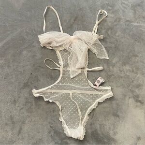 Victoria’s Secret Very Sexy White Transparent Dotted Mesh Cut Teddy Size Small