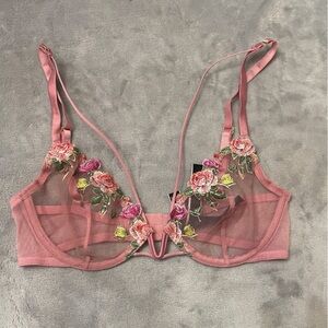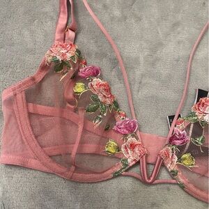 Gorgeous pink mesh bra with colorful embroidered roses. New without tags!