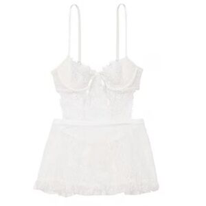 New! Victoria's Secret White Lace Apron Wicked Open Back Babydoll 4328