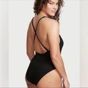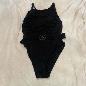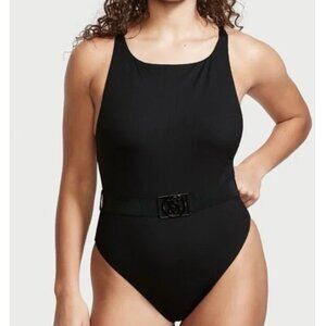 Victoria's Secret Black Wild Wanderer Belted Open Back One Piece Swimsuit Size Medium