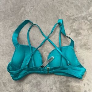 Turquoise adds two cups push-up underwire bikini top with rhinestone embellished straps and studs throughout! New without tags!