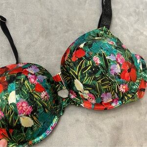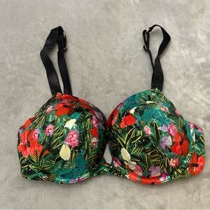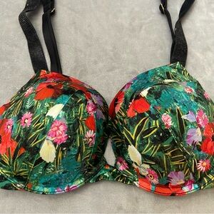 Tropical floral adds two cups push-up underwire bikini top with rhinestone embellished straps and crisscrossed back. New without tags!